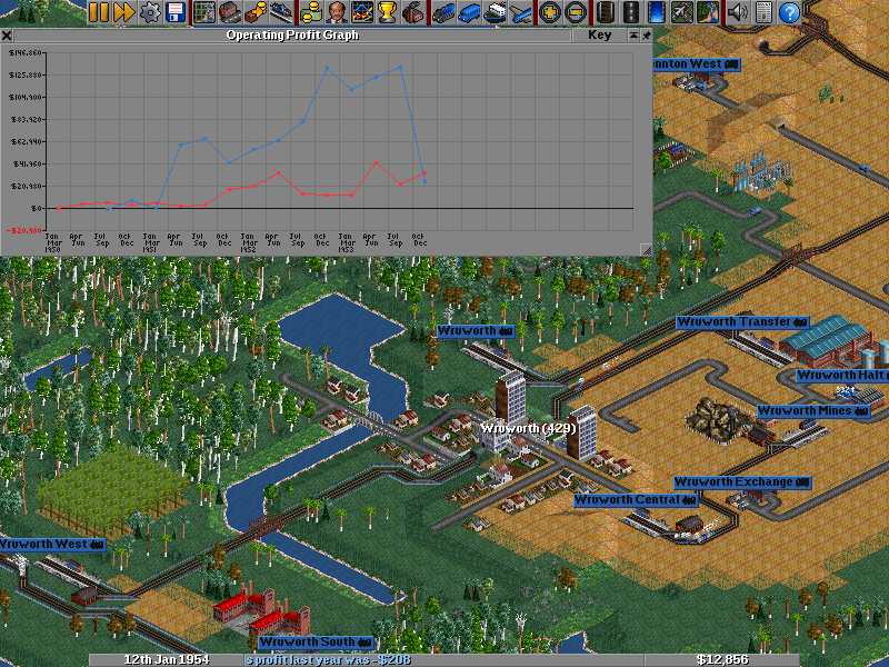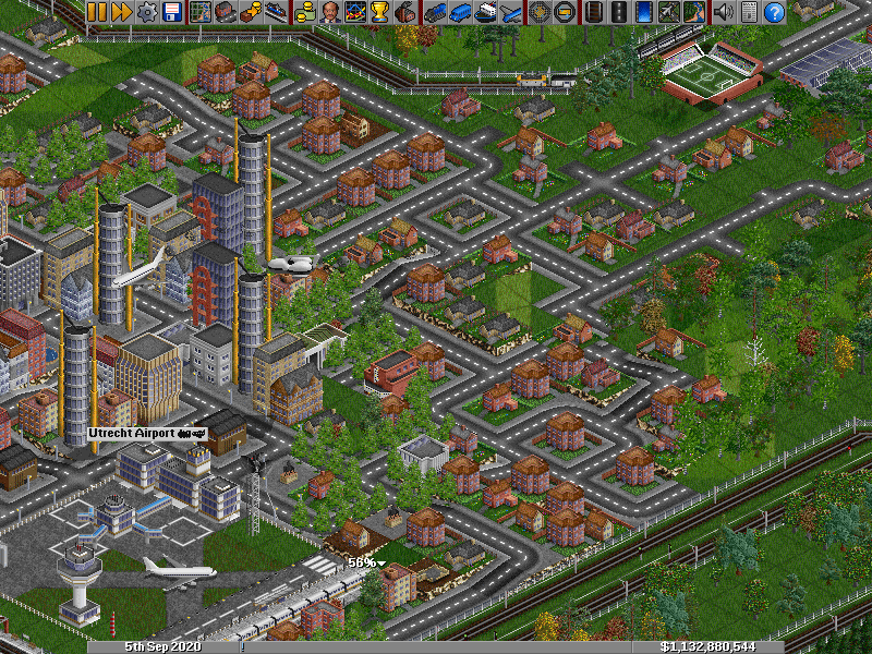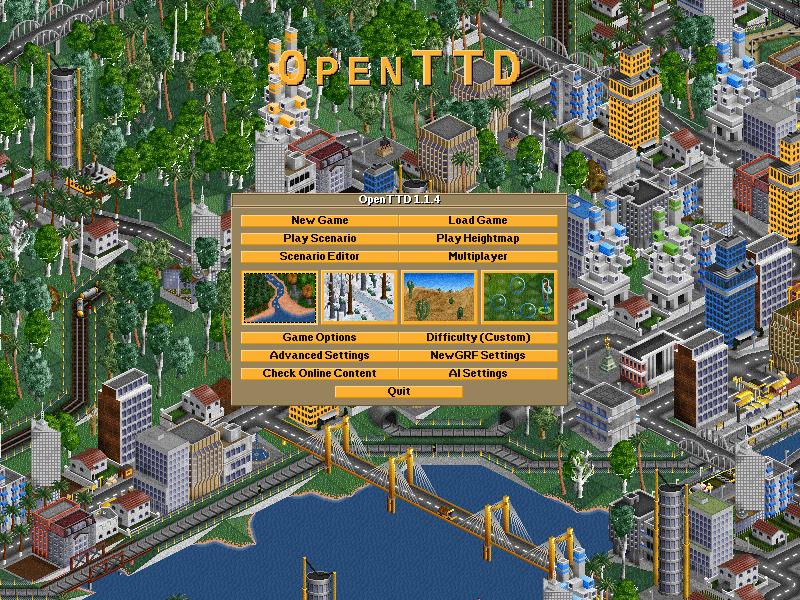 OpenTTD (www.openttd.org) is a popular and complete open source clone of the business simulation Transport Tycoon.